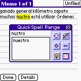 MSWord-like Spell Checking QuickSpell detects misspelled words and suggests correct spelling alternatives. The program can be started from almost any application on your Plam PDA or SmartPhone. Just select the correct alternative for the misspelled word from the offered list and proceed with your work. User-friendly intuitive interface and customizable performance are other of the useful features of QuickSpell. Quick CheckSpell Bundle Bundled with QuickCheck, QuickSpell makes a powerful spell checking suite, named Quick CheckSpell Bundle. In addition to the functionality of QuickSpell, QuickCheck will underline misspelled words in your notes from within other Palm programs without the need to interrupt your work. QuickCheck works in a similar way to the built-in spell-checker of the famous MS Word, which is a part of the Microsoft Office package. Quick CheckSpell Bundle is available in 6 different languages: Quick CheckSpell (English) Quick CheckSpell (French) Quick CheckSpell (Italian) Quick CheckSpell (Spanish) Quick CheckSpell (German) Quick CheckSpell (Dutch) Multiple Dictionary Databases Available QuickSpell supports variety of spelling dictionaries and languages installed at a time. The distribution packet for each language version includes three rich dictionaries, which are suitable from beginner language learners to professionals, working with most sophisticated lexical structures. Each spelling dictionary for QuickSpell is also compatible